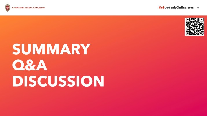 SOME OF THE SESSION EVALUATION COMMENTS (Thank you!): “Really enjoyed the session and strategies you shared, especially in the context of the pandemic and the rush to move online. Very helpful! Thanks.”; “Good support materials, thank you!”; “Very insightful perspective!”; “Nice work, just a lot to go through!”; “Thank you for the plethora of resources”; “Thank you! I enjoy that you shared resources so I can continue learning!” (note: one participant commented that it would be helpful to have materials in advance – agreed! will have them earlier next time).